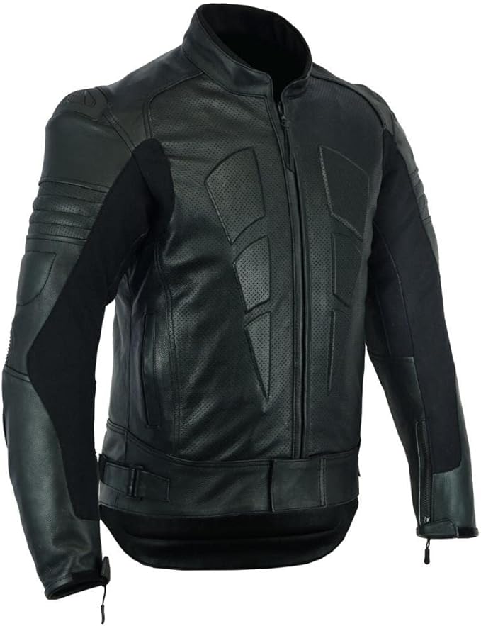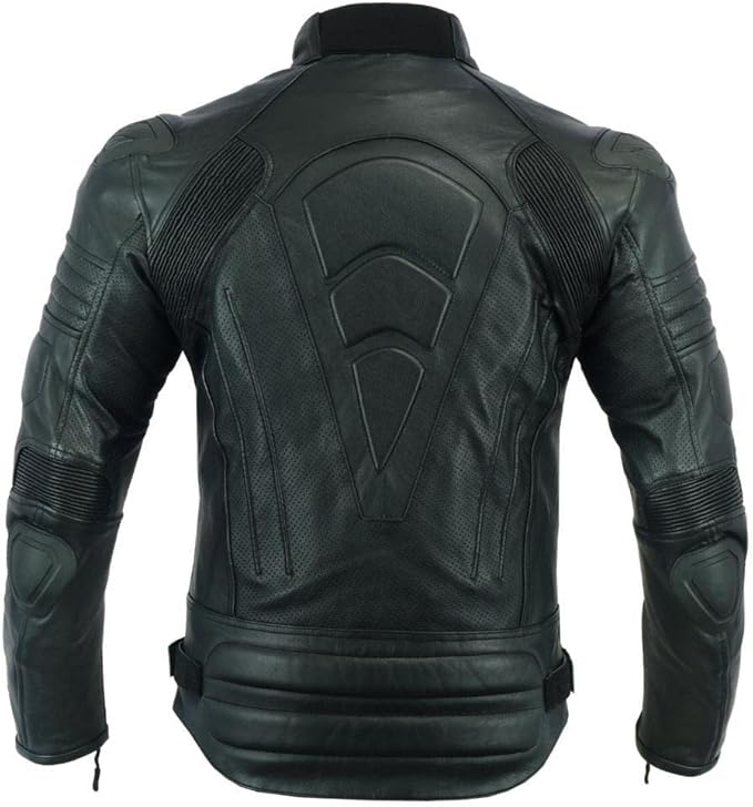 Men’s Perforated Motorcycle Leather Jacket – Armoured, Black