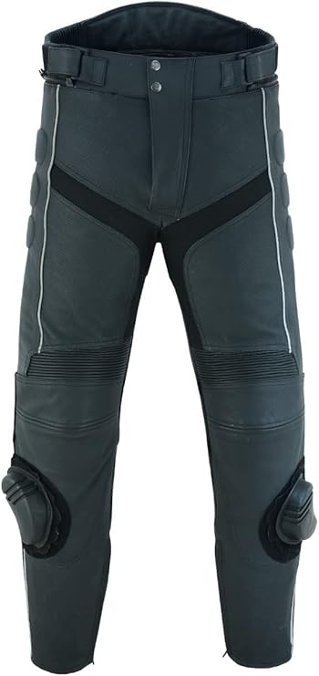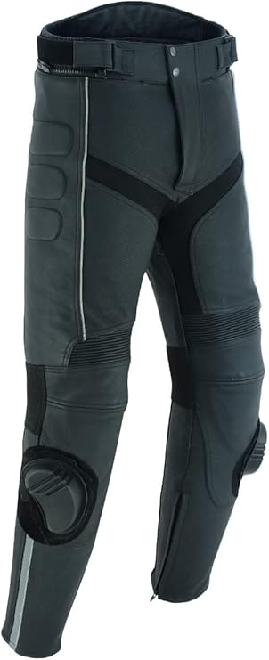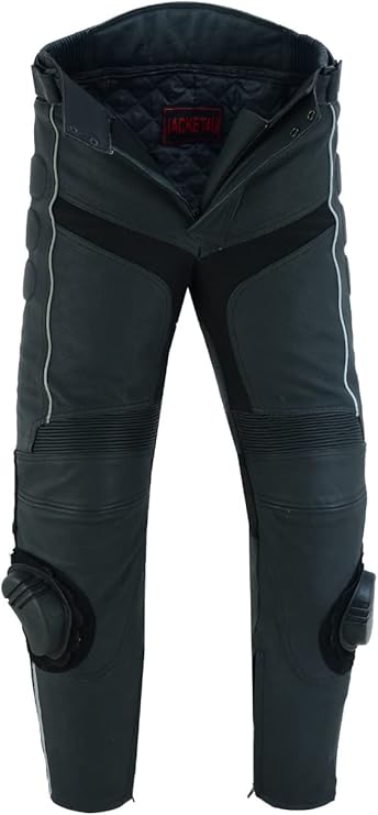Mens Motorcycle Long Leg Leather Armoured Safety Pants